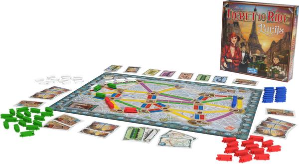 In dit snelle Ticket to Ride-spel racen spelers tegen elkaar om de meest iconische locaties van de prachtige Franse hoofdstad te bezoeken en hun bestemmingskaarten te voltooien.