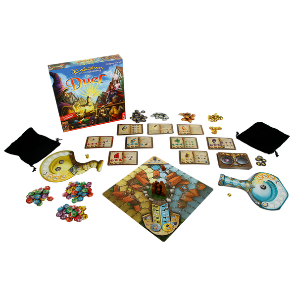 Deze versie van het bekende bordspel “De Kwakzalvers van Kakelenburg” is uitsluitend geschikt voor 2 spelers, maar biedt meer interactie en onderlinge strijd dan het basisspel. Wie dus houdt van het beproeven van zijn geluk, het dwarszitten van zijn tegenstander en het uitproberen van verschillende tactieken, komt in dit spel helemaal aan zijn trekken