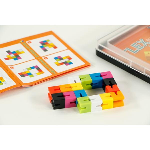 Ontspan, speel en focus! Laat stress niet met jou aan de haal gaan en draai het elastiek met de 16 blokken van de FLEX puzzler MAX 45 of 90 graden. Deze echte fidget toy in de lijn van Rubik’s cube biedt 80 uitdagingen in 2D en 3D zorgen voor breinbrekend puzzelplezier. Ga in je eentje op zoek naar de juiste oplossingen en stimuleer zo je concentratie en ruimtelijke inzicht. Te combineren met andere FLEX puzzlers uit deze lijn!