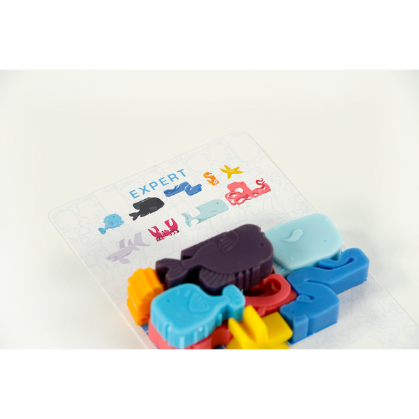 Je kiest een uitdaging en zet de zeedieren dan zo op het raster dat ze perfect passen. De kaart geeft aan welke zeedieren je moet gebruiken en uit hoeveel lagen het bouwwerk moet bestaan. Kun jij alle uitdagingen oplossen?