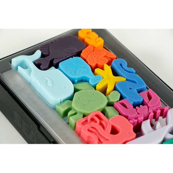 Zet de zeedieren zo op het raster dat ze perfect passen. Soms moet je de zeedieren zelfs in 2 of 3 lagen verdelen. Het spel bevat 48 uitdagingen in verschillende moeilijkheidsgradaties!
